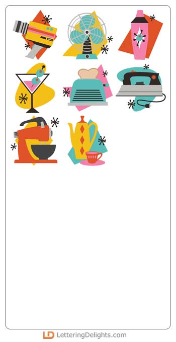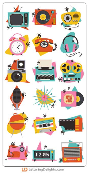 This fun retro bundle features retro styled images, signs and phrases that are perfect for cards, cr..