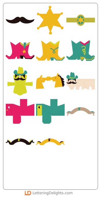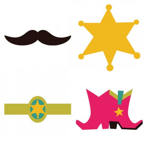 When you're roundin' up the gang for a rootin' tootin' good time, you've got to have the right stuff. This set provides gold stars and boots, treat boxes and cupcake wraps...oh, and a mustache for those lil' pards that haven't grown their own yet. All the necessary things for the cowboys and cowgirls at your ranch.