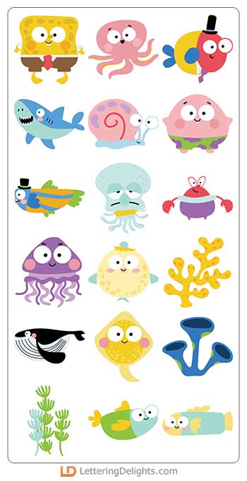 This adorable cuttable collection features trendy ocean characters and puns that are perfect for car..