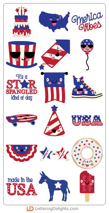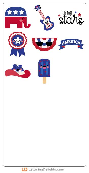 This fun cuttable collection features adorable kawaii-style star emojis and patriotic themed images ..