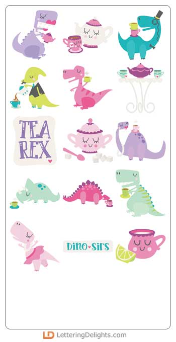 This fun collection features adorable dinosaurs in a park setting or a Tea Party setting. Perfect fo..