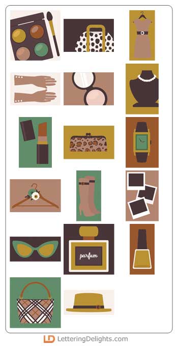 This fun collection features vintage styled high fashion girls, makeup, accessories and vintage styl..