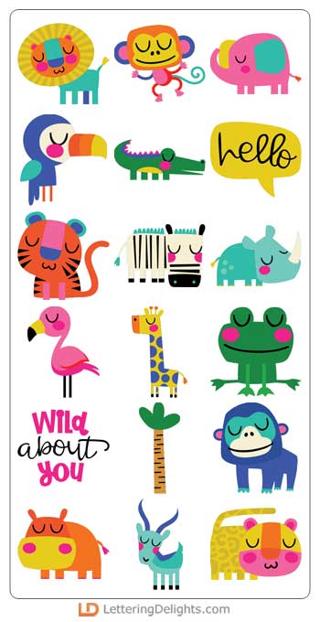This adorable collection features whimsical safari animals and wild safari animals ready for school...
