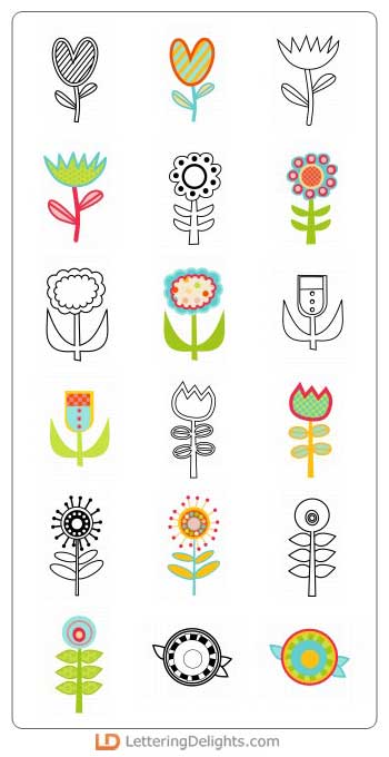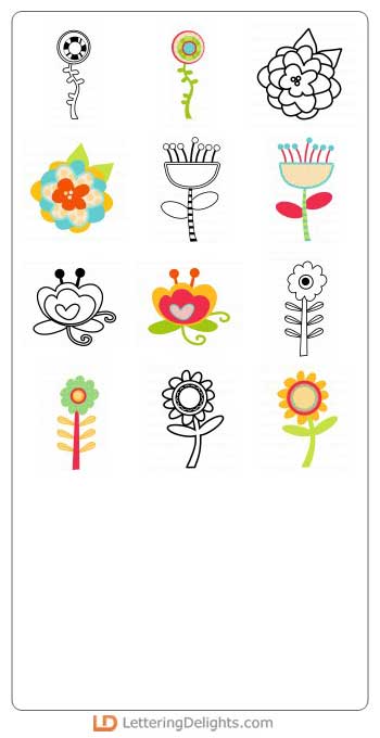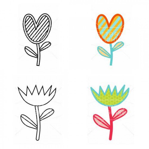 Flowers, galore! You can never have too many brightly colored flowers, and with the Funky Flowers clipart set, you'll never run out because you can use the colorful images in the set or create your own personal favorites from the black and white images!