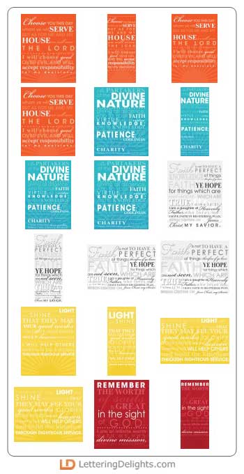 2012 YW Personal Progress Value Posters and Bookmark includes 32 colorful images! This package includes the 8 Values in 4 different sizes---all which can be used either as approx. 3x5 bookmarks, or as posters (up to 11x17 and 300 dpi!). Get organized, get your message across, and do it in a fun, fresh, colorful way!