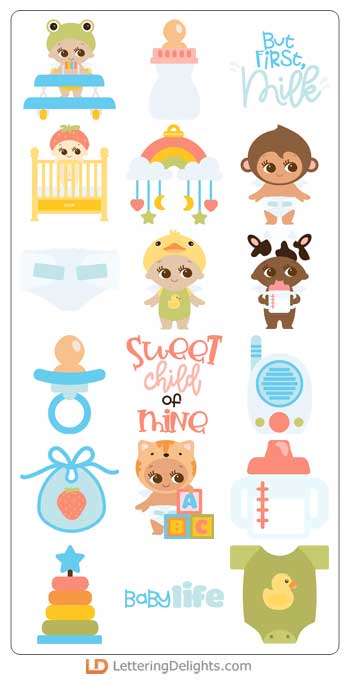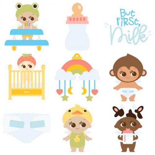 This fun graphic collection features baby angels and baby essentials, perfect for cards, crafts, gif..