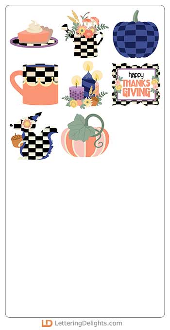 This fun graphic set features 26 chic fall and Thanksgiving inspired designs. Perfect for cards, crafts, gifts, planner stickers, classrooms, scrapbook pages and more!
