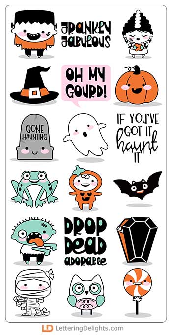 This adorable graphic collection features cute Halloween themed characters,imagery and phrases. Per..