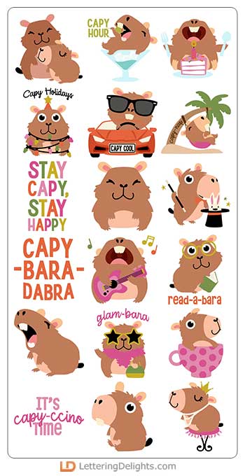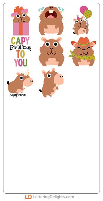 This adorable graphic set features 26 cute Capybaras. Perfect for cards, crafts, gifts, planner stickers, scrapbook pages, classrooms and more!