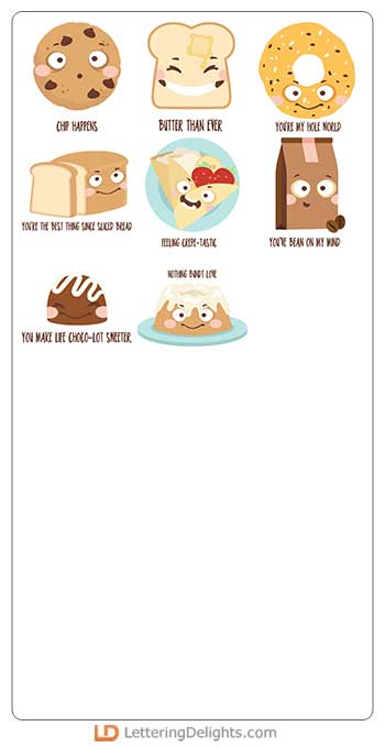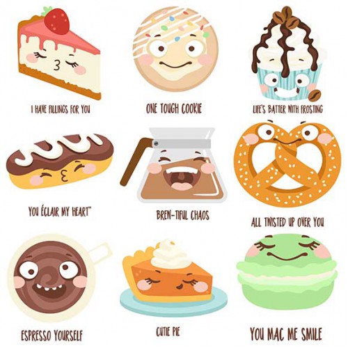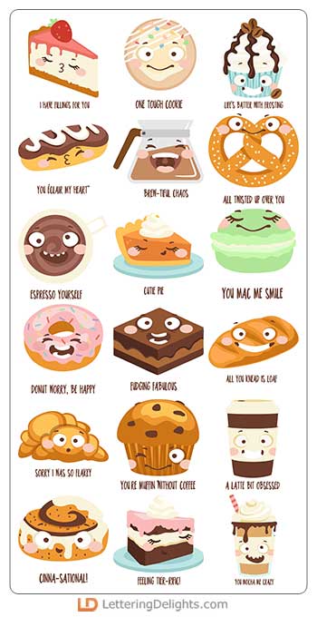 This fun collection features kawaii style espresso emojis, and kawaii style coffee shop bakery items..