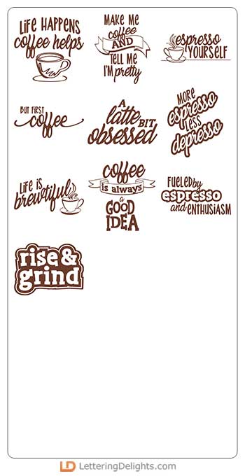 This fun graphic set features 10 espress and coffee puns and phrases and perfect for cards, crafts, gifts, decor, classrooms, planner stickers and more!