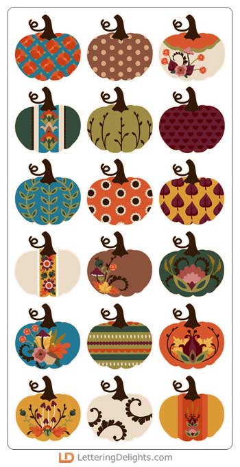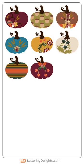 This beautiful graphic set features 26 fall pumpkins in a goreous array of leaves and florals perfect for fall, cards, crafts, gifts, planner stickers, decor, scrap book pages, classrooms and more!