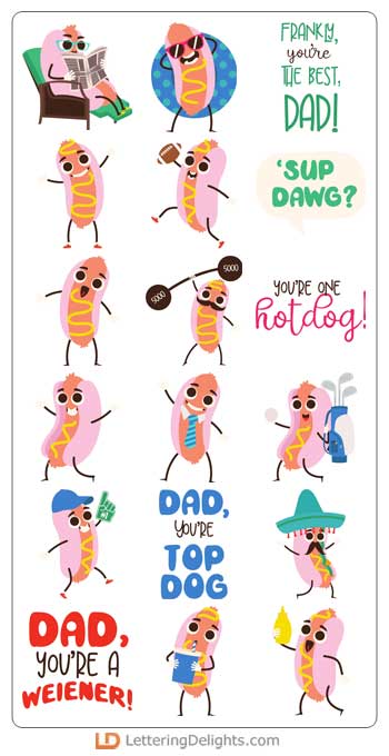 This fun graphic collection features adorable hot dog characters and puns, and other food items. Per..