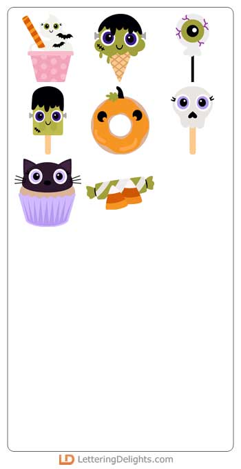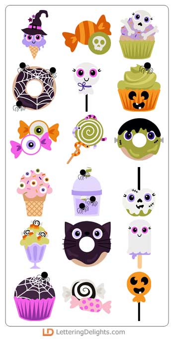This adorable graphic features 26 sweet Halloween treat. Perfect for the holidays. Use it to create fun cards, gifts, party decorations, planner stickers, scrap book pages and more!