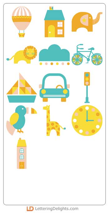 Adorable and super simple geometric based imagery makes for cute product for scrapbooking, cards, nursery, and more.