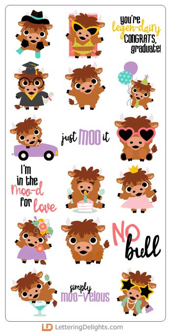This adorable graphic set features 26 cutie highland cows living thier happiest life. Perfect for cards, crafts, gifts, planner stickers, decor, classrooms and more!