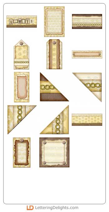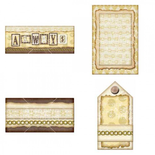 Designing an elegant scrapbook page is easy and fun with downloadable images from "Always," a lovely set of boxes, toppers, tags, corners, and frames. Earth tones combine with torn paper accents that are sure to give your paper creation a truly stylish look.