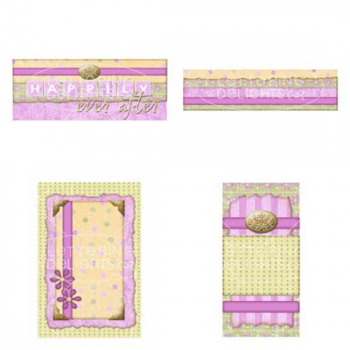 "Ever After" is scrapbooking style at its best. Download, print, and trim these images to create fabulous wedding day or Valentine's Day scrapbook pages, greeting cards, and other paper creations. The ribbon, torn paper, and metal-look embellishments add creative interest and elegance.