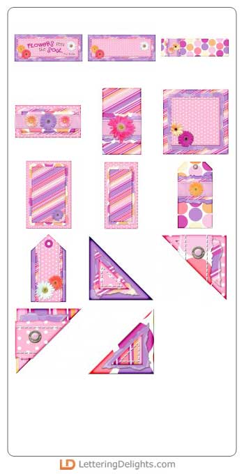 Express your creativity in a world of gerbera daisies. Design lovely scrapbook pages, cards, and more with this set of digital boxes, corners, tags, and mats. Download, print, trim, and your on your way to beautiful paper crafts with a stylish floral touch.