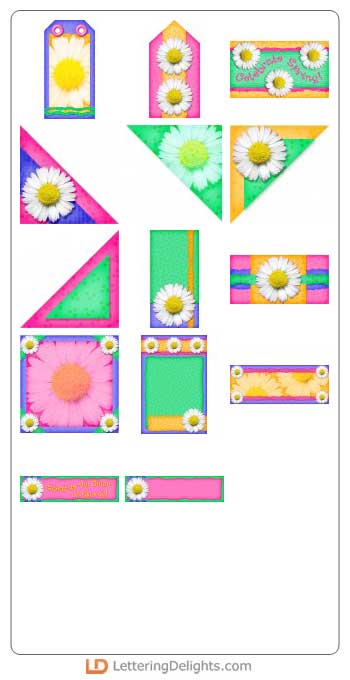 Download your way to colorful springtime paper accents. Try "Mod Daisies" for scrapbook page embellishments, photo mats, greeting cards, gift tags, bookmarks, gifts, and more. These printable boxes, tags, and corners are bursting with colorful, floral creativity.