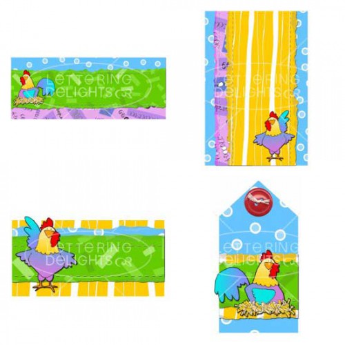 Make your barnyard scrapbook page extra special with "Doodle Doo" Journaling Delight images. These chickens and roosters are designed in the irresistibly creative Jillustration style. Make greeting cards, gift tags, bookmarks, photo mats, and more with a down on the farm, in the chicken coop theme.