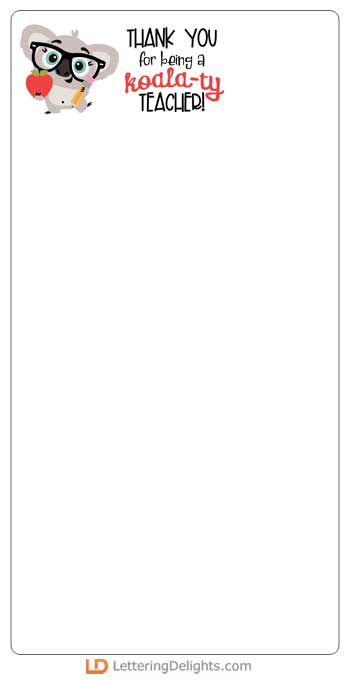 This cute mini graphic with koala and pun is the perfect way to show your appreciation to your teachers.
