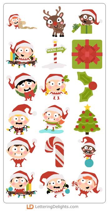 Our favorite mischeivous elf graphics are perfect for Holiday card making, scrapbooking, planners, elf fun and more!