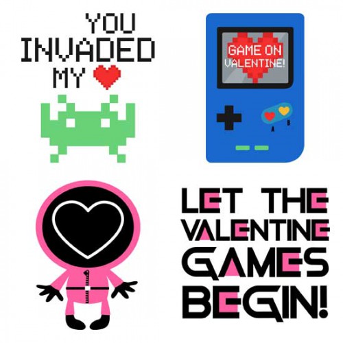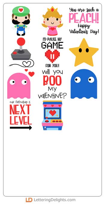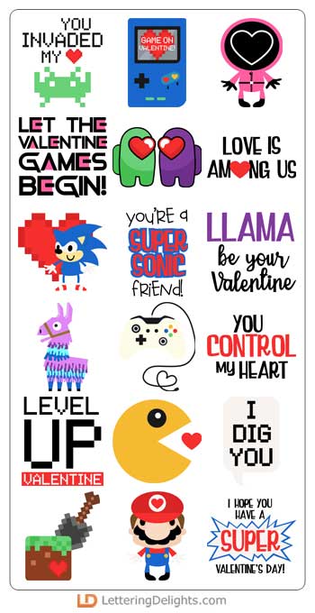 This fun graphic collection features classic games, video games, characters and Valentine puns. Perf..