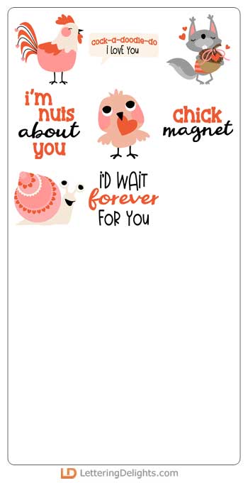 This adorable graphic set features 26 love animals and puns that are perfect for cards, crafts, gifts, planner stickers, scrapbook pages, classrooms, Valentines and more!