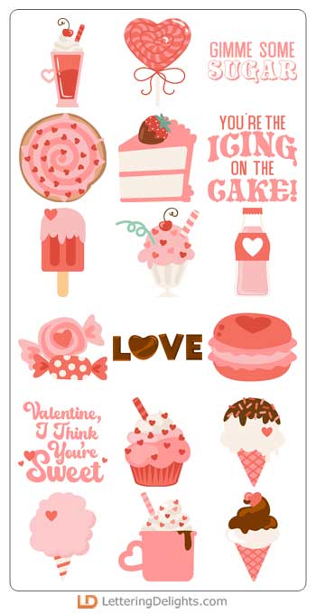 This beautiful graphic set features 26 love themed sweets perfect for Valentine's, Anniversaries and more! Use this beautiful doodlebat to create fun gifts, cards, decor, scrap book pages, planner stickers and more!