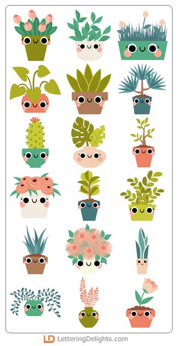 This adorable graphic set features 26 images of kawaii style plants perfect for Earth Day, Mother's Day, cards, crafts, classrooms, planner stickers, gifts, decor, scrapbook pages, and more!