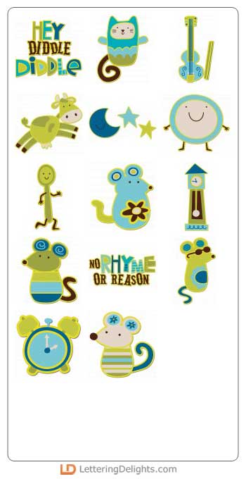 Create your own Nursery Rhymes with these cheerful images, or fall back on a few of the timeless favorites. This adorable graphic set has really no rhyme or reason, and what's wrong with that? Don't we deserve a little playtime for the kid in all of us?! Repeat after me, "Hickory Dickory Dock..."