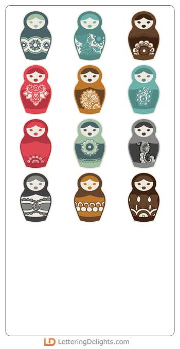 This Matryoshka themed alphabet coordinates with our Pretty Matryoshka graphics.
