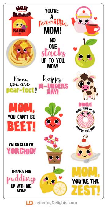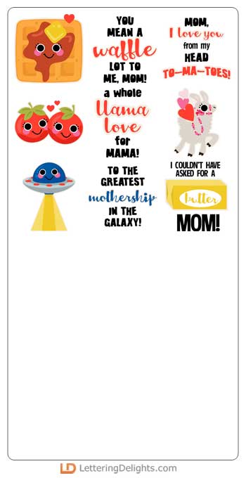 This adorable graphic set features 27 kawaii style images with corresponding Mother's Day puns. Perfect for Mother's Day, gifts, card making, planner stickers, scrapbook pages, decor and more!