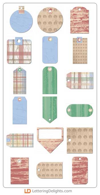 Are you a tag fanatic? Download this collection of colorful, digital tags in an assortment of colorful plaid designs. It's designed to match with the "Wilderness Retreat" journaling delight images, alphabet, and pockets. Print and trim these fun tags, add string, ribbon, jute, or eyelets, then embellish scrapbook pages, greeting cards, mini tag albums and more.