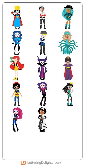 Your favorite villians and their offspring! Create fun cards, party decor, scrap book pages, planner stickers and more!