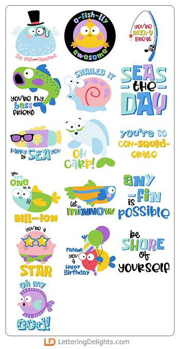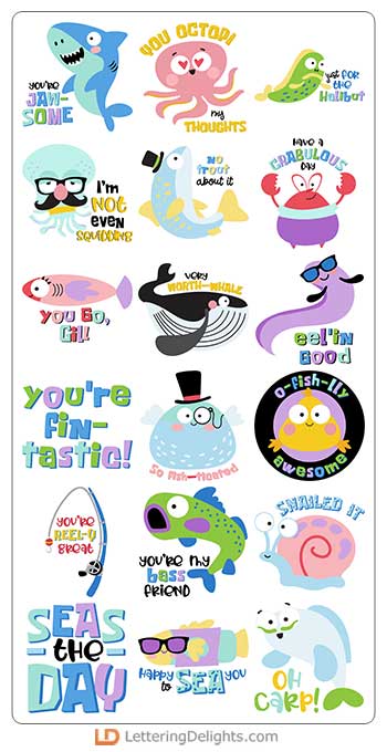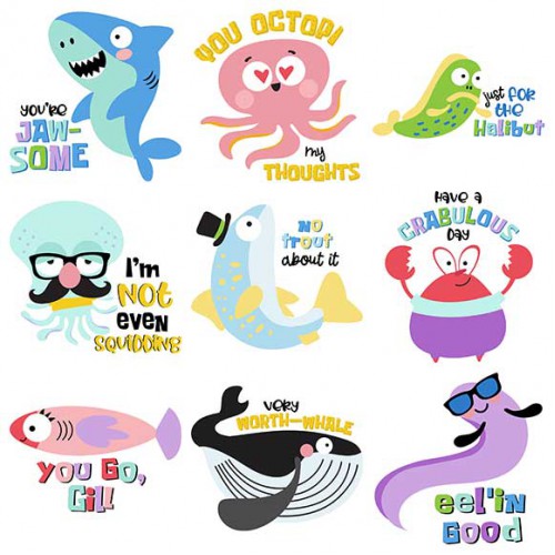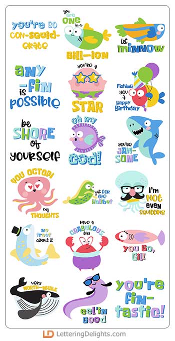 This adorable graphic set features 26 trendy ocean characters with puns that are perfect for cards, crafts, gifts, planner stickers, scrap book pages, classrooms, teachers and more!