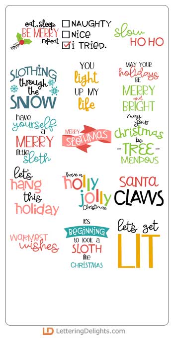 The perfect puns and sayings to coordinate with our Slothmas collection. Create fun cards, gifts, decor, planner stickers, scrap book pages and more!