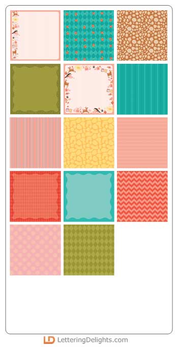 The do-re-mi song visualized with a cat, bunny, dog, deer, and more. Cute tea, bread and jam, birds on a limb, and flowers round out the collection. Great for cards and decor.