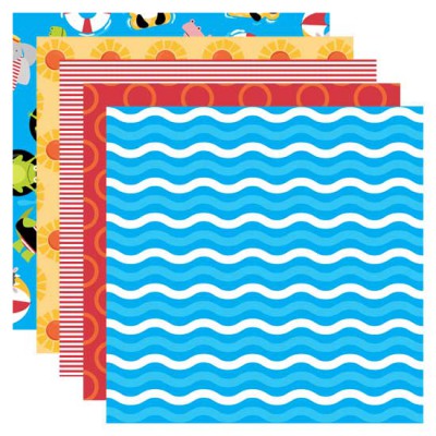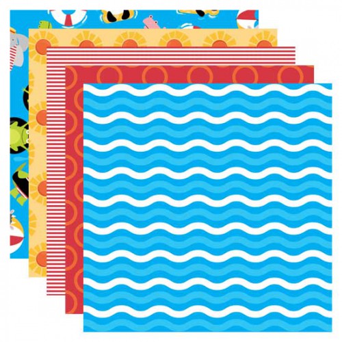 Bright and colorful patterns to coordinate with your Pool Party Product filled with whimsical animals wearing swimsuits.