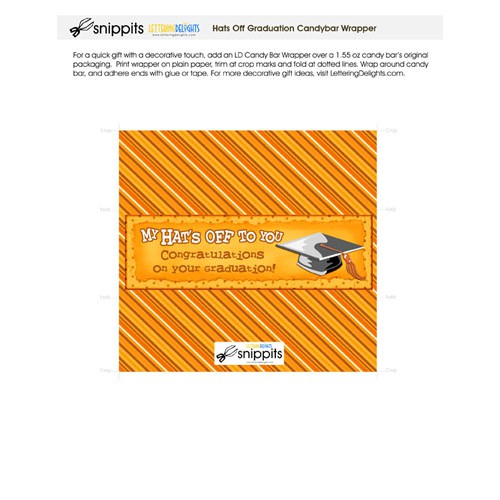 Create a sweet favor for a graduation party or a gift for the graduate. These ready-made, printable candy bar wrappers fit around standard-sized chocolate bars. Pick the color that's best for you...this one is fitting for schools with orange colors.