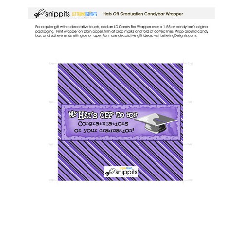 Create a sweet favor for a graduation party or a gift for the graduate. These ready-made, printable candy bar wrappers fit around standard-sized chocolate bars. Pick the color that's best for you...this one is fitting for schools with purple and black colors.