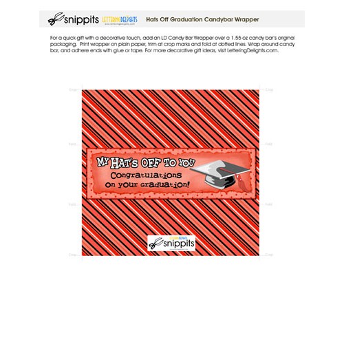 Create a sweet favor for a graduation party or a gift for the graduate. These ready-made, printable candy bar wrappers fit around standard-sized chocolate bars. Pick the color that's best for you...this one is fitting for schools with red and black colors.
