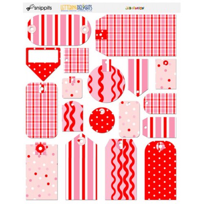 Use this page of 18 coordinating gift tags for Valentine's Day papercrafting and scrapbooking. Make your own Valentines with these printable tag embellishments or tie them onto a yummy chocolate treat!