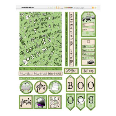Get ready for Halloween fun with the Monster Mash card kit! Print and cut out dozens of fun pieces to create your own cards, tags, gift bags, layouts and more. For even more matching pieces, get the Monster Mash Deluxe card kit, with both green and orange papers and accents, for only $3.99!