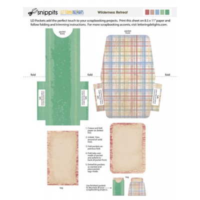 These colorful little pockets are a clever and classy way to add creativity to any paper crafting project. Simply download, print, and trim, then follow the direction on the sheet for assembly. Create a variety of looks by mixing these accents with images from the corresponding "Wilderness Retreat" journaling delight set, alphabet, and tags. You'll be making fabulous scrapbook pages, greeting cards, and more in no time flat.