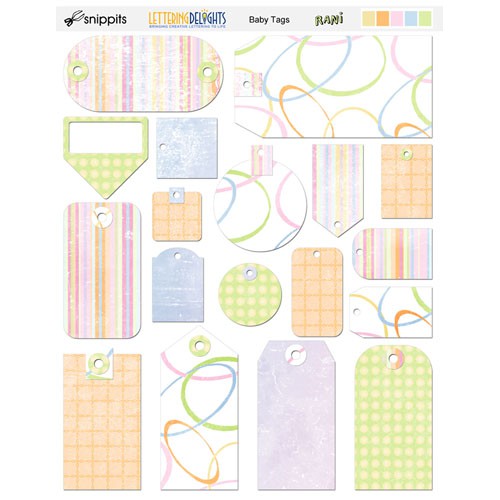 This sheet of 18 coordinating gifts tags features light pastel motifs created to match all "Baby Tags" products from LetteringDelights.com. Add style and dimension to your baby scrapbook layouts and more with these creative tag embellishments.