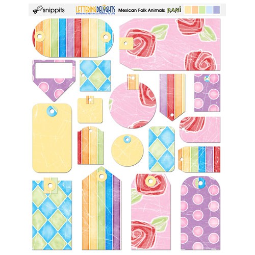 Printable tags are a clever way to embellish paper crafts. These ready-made, coordinating gift tags are bursting with Mexican color and style. Attach them to gifts or create a south-of-the-border layout with tag embellishments.