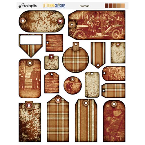 Download once, and use these tags again and again. Add variety and dimension to scrapbook pages, tag albums, greeting cards and more. This sheet of tags has a unique color scheme and vintage fireman designs, enabling you to turn your creative ideas into reality with the click of a button!