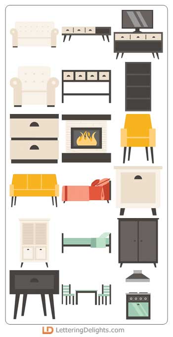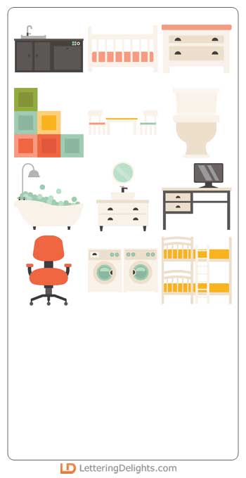 Every home needs furniture and this fun cuttable graphic set has 30 different furniture items for creative crafting, card making, home decor, scrap booking, planner stickers and more!